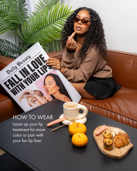Lip treatments provide a protective layer while simultaneously repairing the moisture barrier for softer, healthier lips. Our treatments vary from clear gloss to tinted treatments and all have their own skin benefits and functions. In addition to our smoothie ingredients, we have added active ingredients such as shea butter, vitamin E, peptides, and hyaluronic acid for long-lasting effects to seal in moisture and nourish the lip.